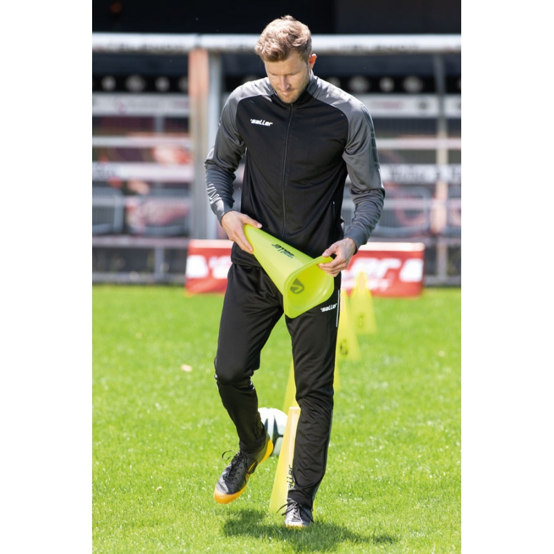 Dzięki dresowi Ty i Twój zespół jesteście doskonale wyposażeni. Materiał S.Dry-Tech jest wyjątkowo lekki, odprowadza pot i przepuszcza powietrze oraz zapewnia długotrwały komfort. W bocznych kieszeniach na suwak bluzy i spodni możesz idealnie schować najpotrzebniejsze rzeczy lub ogrzać dłonie w zimnie. Dzięki zamkom błyskawicznym w okolicy kostki spodnie można łatwo zakładać i zdejmować nawet w butach. Subtelny wzór w paski nadaje dresowi wyjątkowo stylowy wygląd.