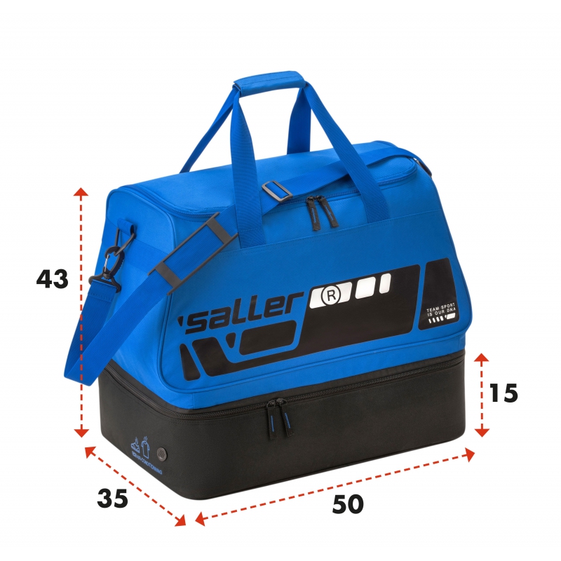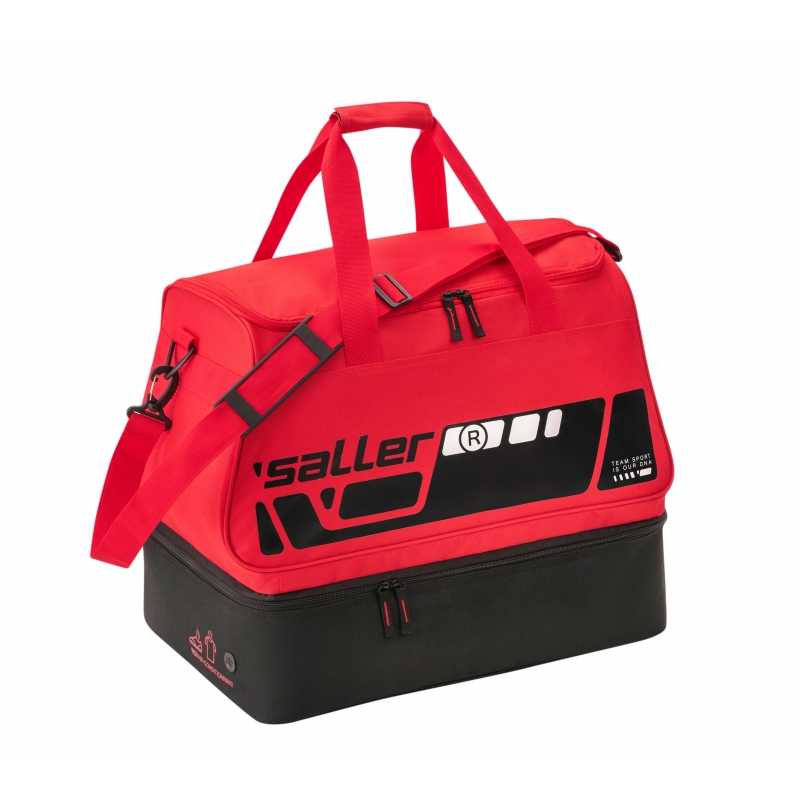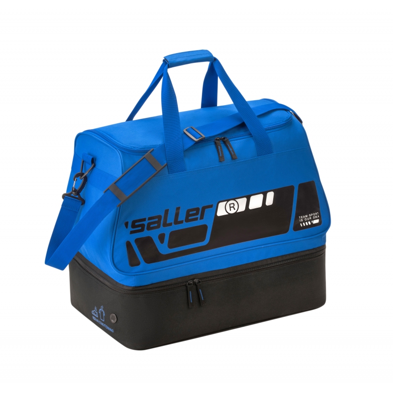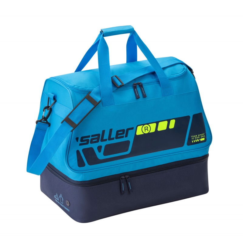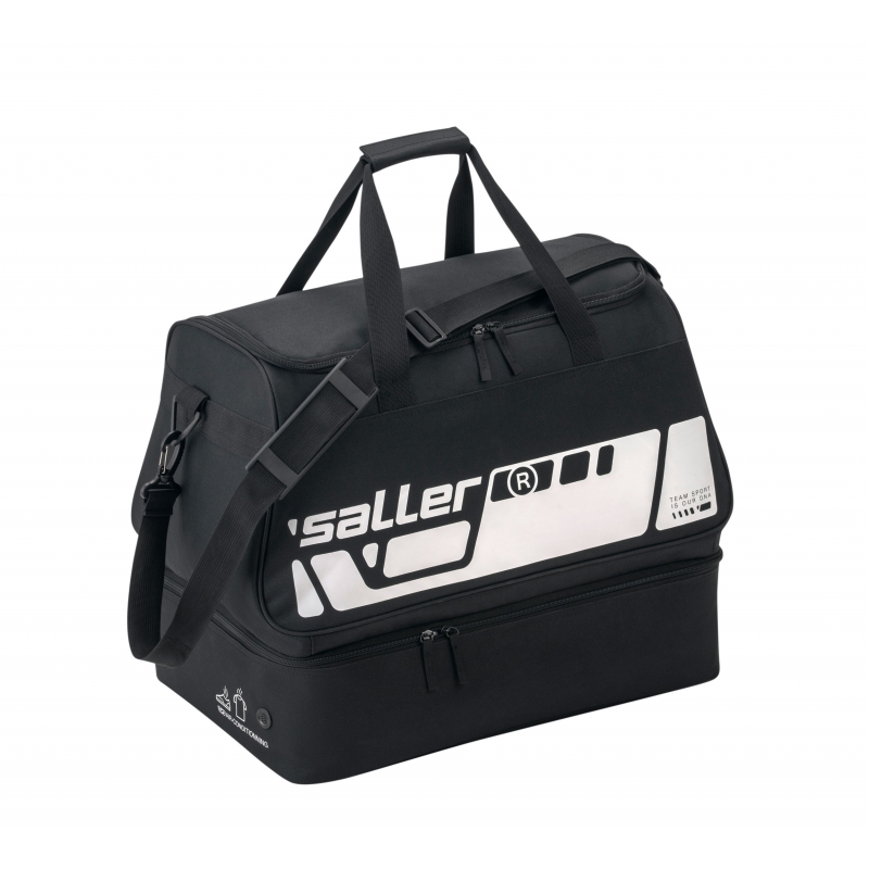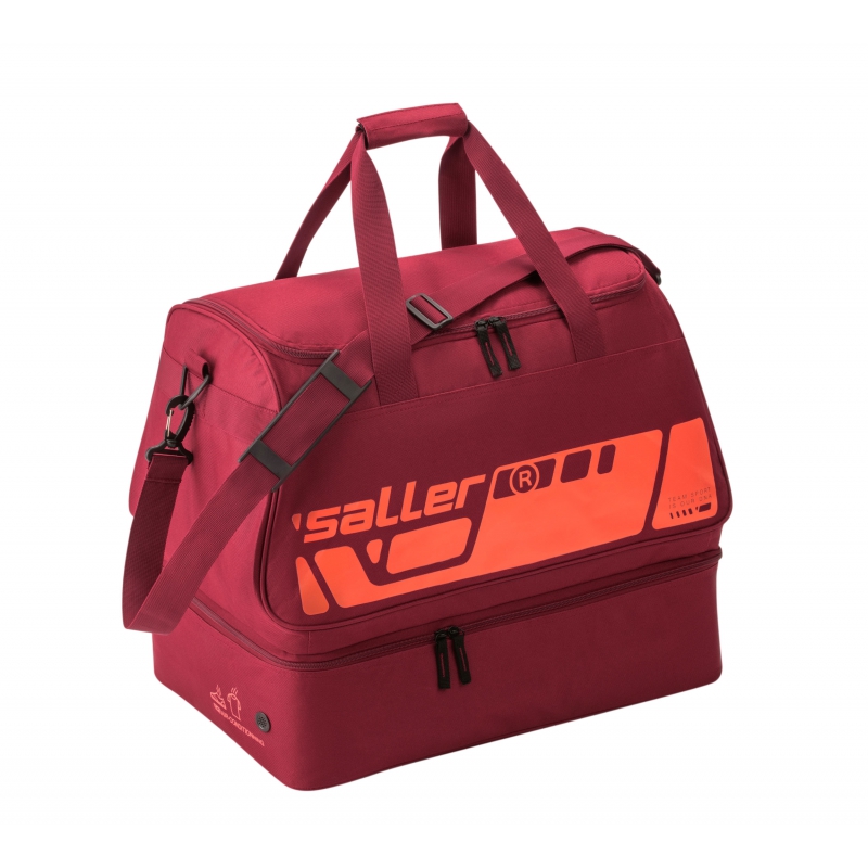Kompaktowa torba Saller z przegrodą na buty zapewnia wystarczająco dużo miejsca do przechowywania wszystkiego, czego potrzebujesz do uprawiania sportu. Oprócz komory głównej oferuje również oddzielną komorę dolną do separacji odzieży mokrej/suchej lub obuwia sportowego. Praktyczna kieszeń boczna zapinana na zamek jest idealna do przechowywania przedmiotów treningowych, które chcesz mieć pod ręką.