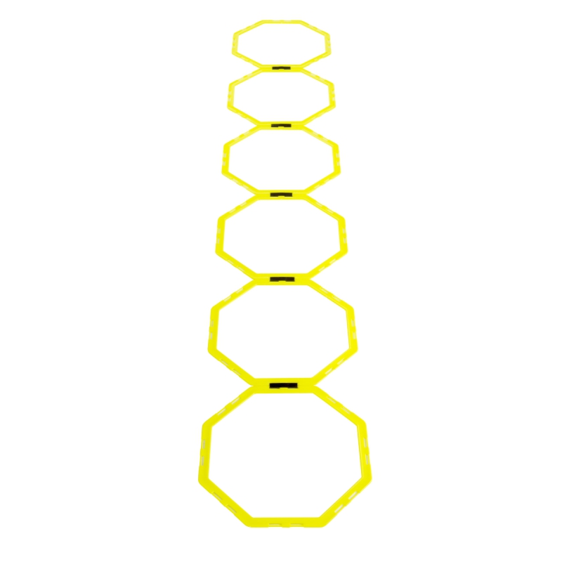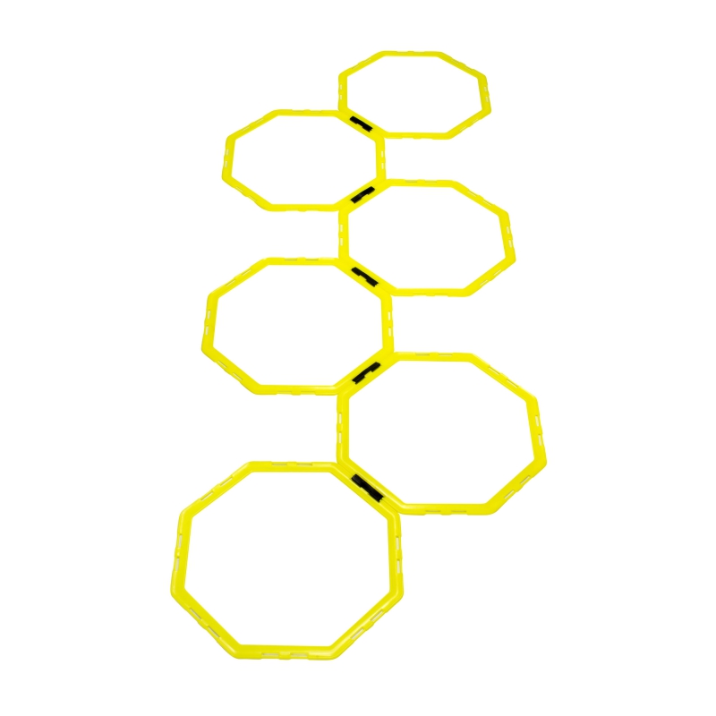 Ośmiokątne pierścienie do ćwiczenia koordynacji ruchowej. Możliwe różne rozwiązania. 6 sztuk w zestawie. Średnica - 43 cm