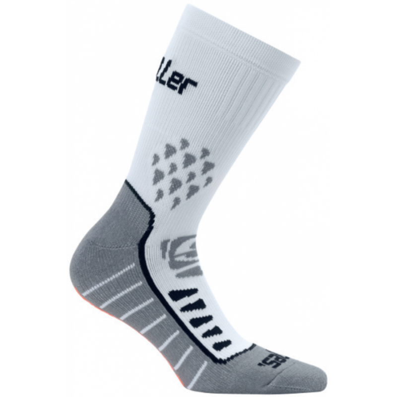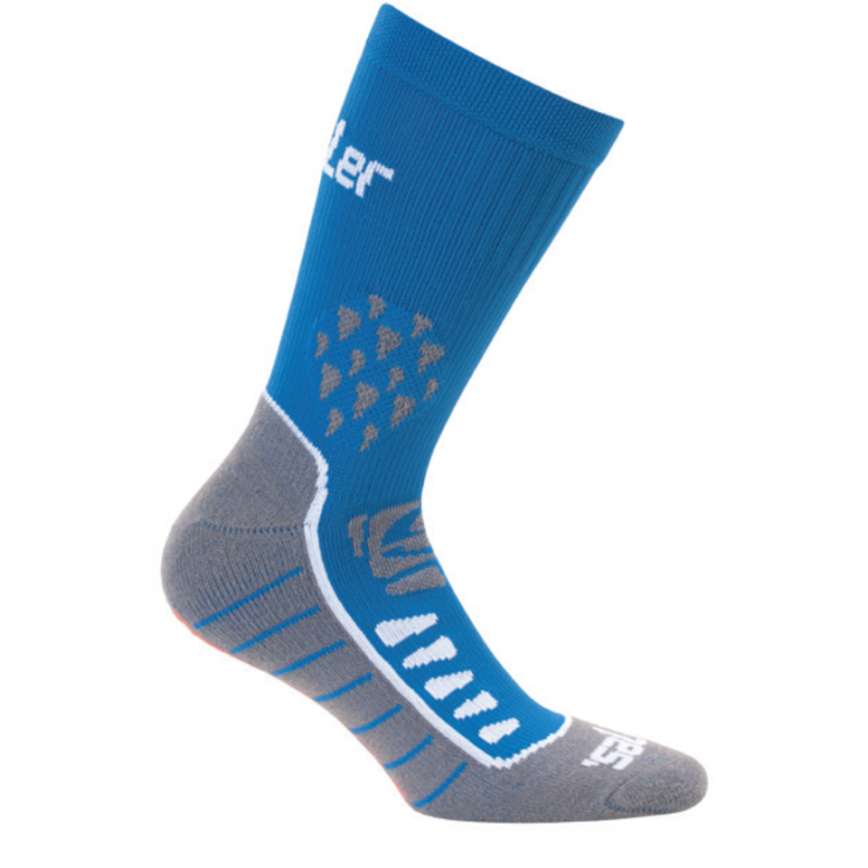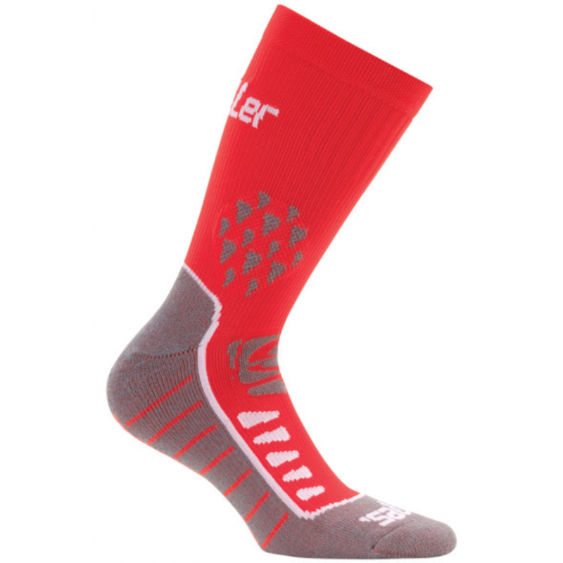 Wysokiej jakości skarpety do treningu piłkarskiego. Wsparcie stawu skokowego przede wszystkim okolicy kostki, ochrona i komfort pięty, wysokie dopasowanie ograniczające otarcia i podrażnienia skóry.