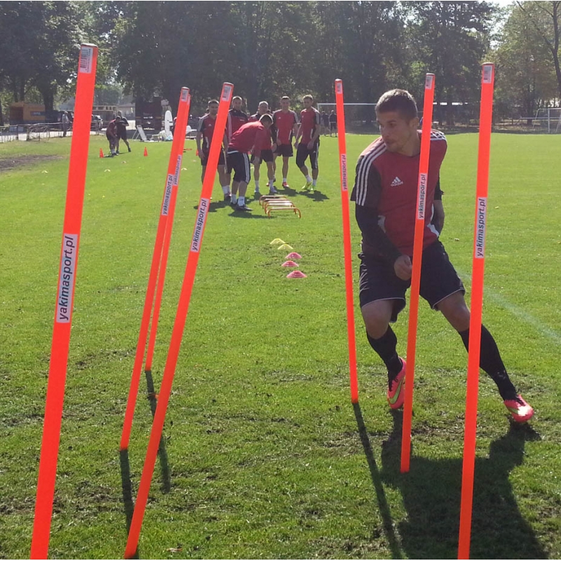 Tyczki slalomowe są używane przez trenerów do różnego rodzaju treningu.